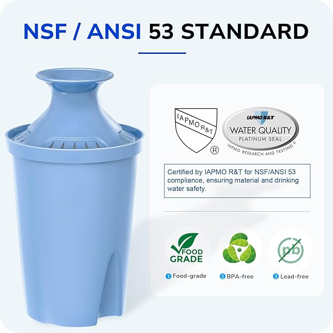 - Enhanced Filtration: BPA-free filter employs multiple layers to effectively remove chlorine, lead, heavy metals, and unpleasant tastes and odors, ensuring a steady stream of refreshing, clean water