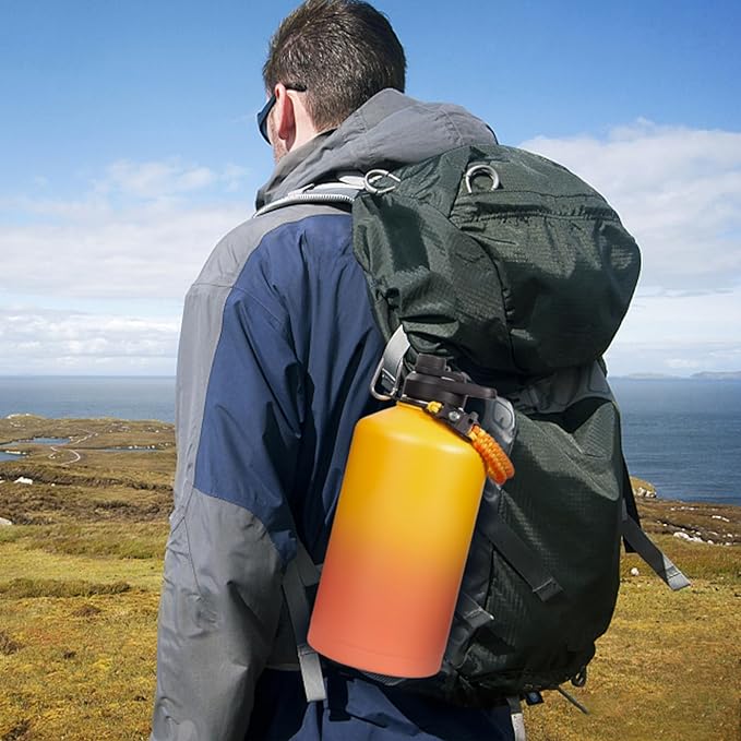 - Versatile Paracord Handle: Hand-woven with durable nylon paracord, the stylish handle of our water bottle not only matches its color but also includes a compass and carabiner. Paracord can make lifting a 64oz/128oz water jug easier for you, making it the perfect companion for all your outdoor adventures.
