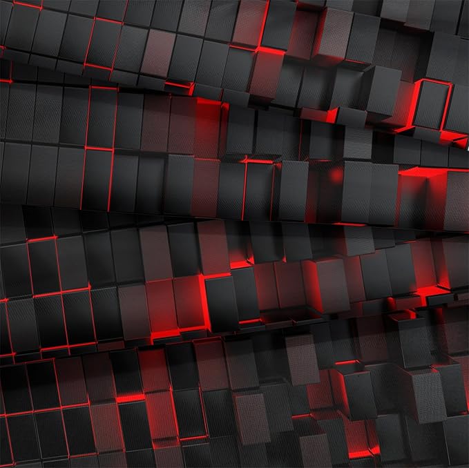 Bedbay Black Checkered Comforter Set Queen Size Plaid Bedding 4 Pcs Stereoscopic Glowing Square Geometric Printing Quilt Set Boys Girls Black Red Grid Bedding Set Queen Duvet Set (Red Black,Queen)