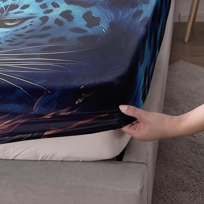 - ✔️【Twin Size】: Create a cozy and comfortable sleeping environment with our unique and novel Leopard fitted sheets. The vibrant colors instantly refresh your bedroom. The set includes 1 Fitted Sheet (39"W x 75"L x 16"H) and 2 pillowcases (20" x 30"). (No flat sheet)