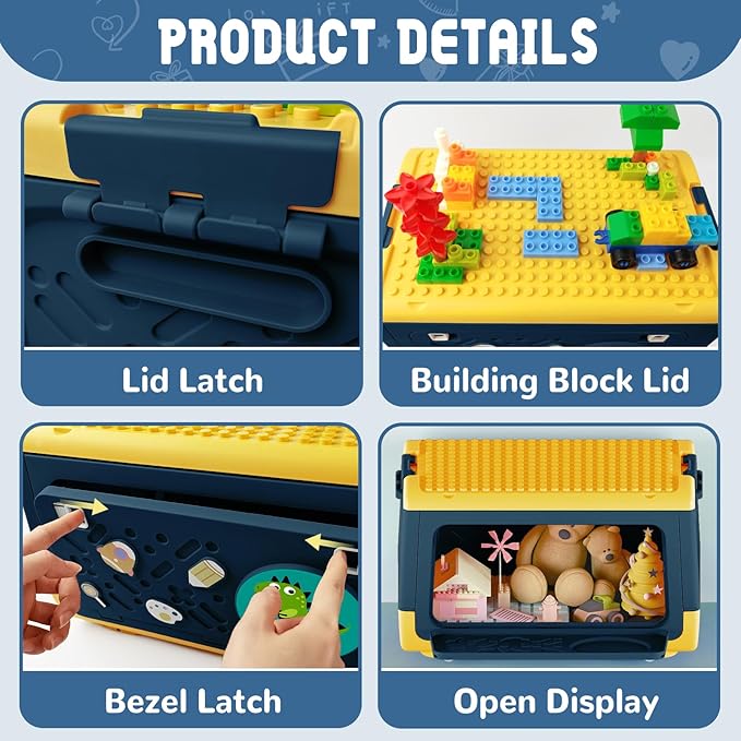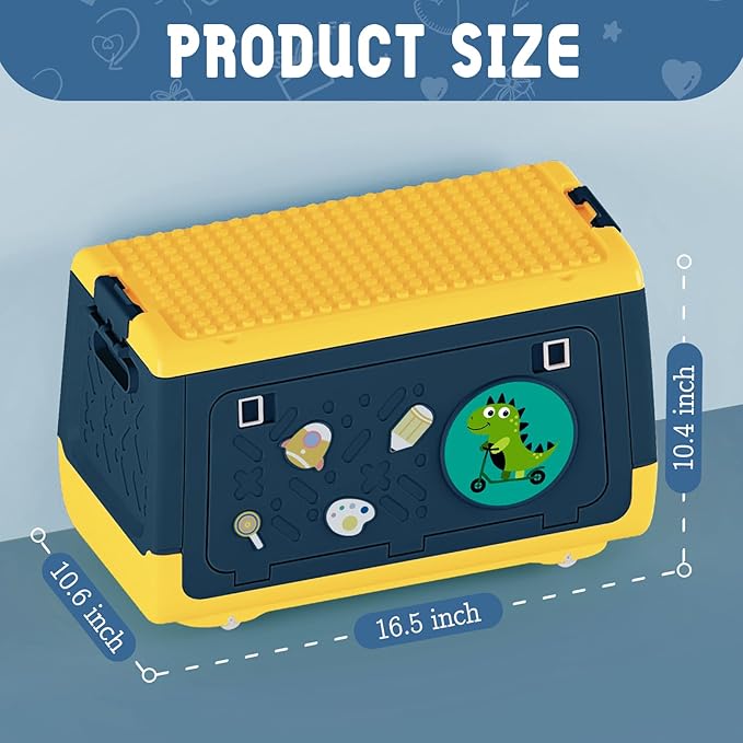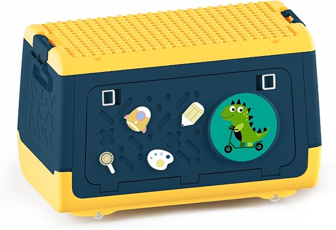 - [Creative Design] Different styles use original unicorn or dinosaur patterns, cute and beautifully placed in the home. Our double-door style has two small spaces on top for sorting a pile of toys, building-block style allows you to build blocks on top, it is compatible with 9mm Large Classic Building Bricks, allowing your child to unleash their imagination.
