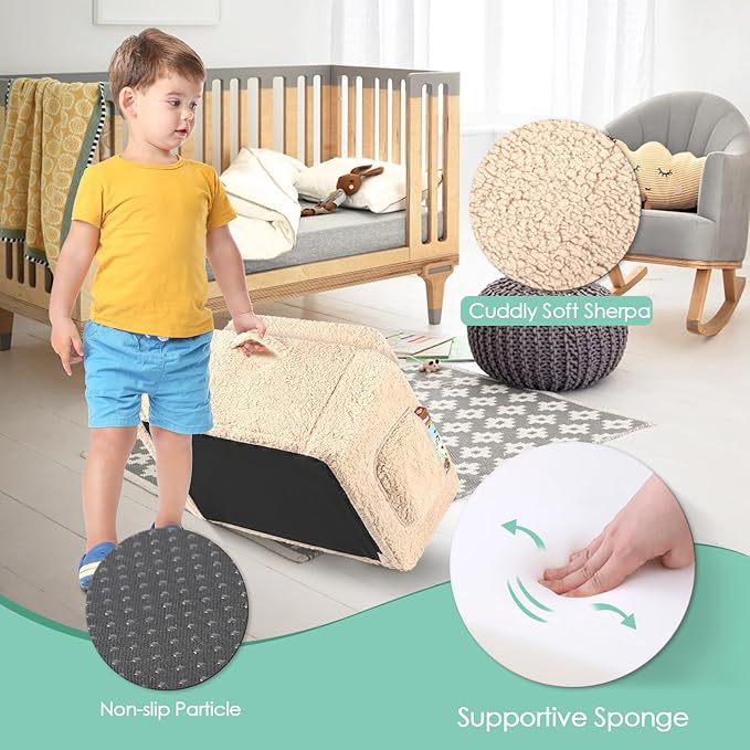 - SOFT COMFY AND SAFE SHERPA HAVEN: This mini sleeper toddler chair, made of cuddly Sherpa fabric and foam sponge, offers a cozy spot for children. With no hard arms or sharp edges, it's a safe and comfortable nook for kids up to age 7 to relax or sleep