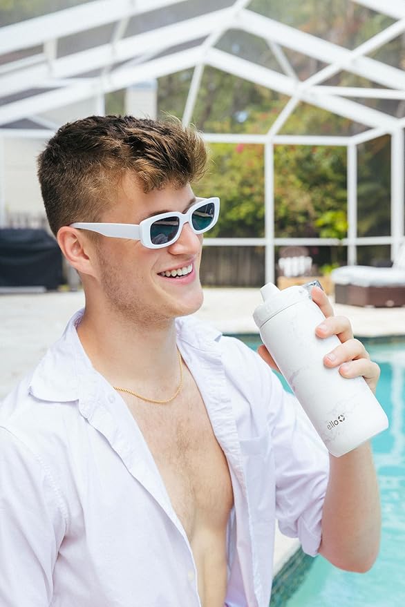 Ello Cooper 18oz Stainless Steel Water Bottle with Straw and Carry Handle, Double Walled and Vacuum Insulated Metal, Leak Proof Locking Lid with Soft Silicone Spout, Reusable, BPA Free, White Marble