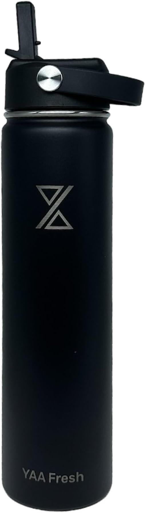 Yaa Fresh 24Oz BPA-Free 24 Hr Cold/12 Hr Hot Insulated Stainless Steel Sports Water Bottle with Straw and Lid, Food-grade Double Walled, Leakproof, Insulated Thermos, Wide Mouth for Men, Women & Kids