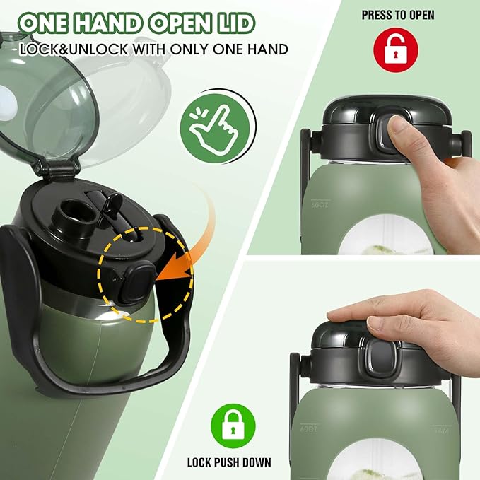 - Versatile Hydration-Friendly Design: Our timed water bottle features a unique dual-mouth lid, allowing you to switch drinking options between spout and straw anytime, anywhere. Say goodbye to constant lid changes. The press-and-push button lid design enables easy one-handed and leak-proof drinking.