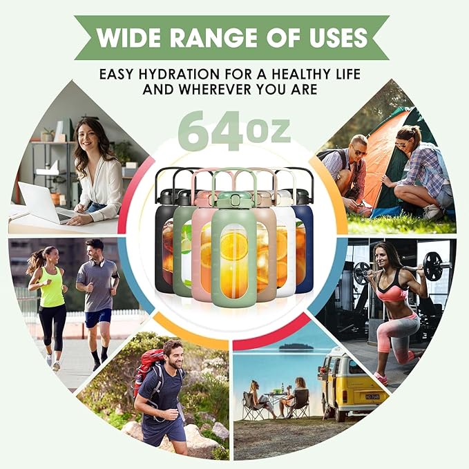 - Premium Quality for a Sustainable Life: Made from superior borosilicate glass, this healthy water tumbler is free of BPA BPS, PVC, and lead. It is also easy to clean and dishwasher safe. The non-slip silicone sleeve safeguards the glass against cracking or breaking, ensuring long-lasting durability.