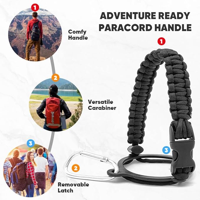 - PARACORD TRAVEL HANDLE: Hayer's Stainless steel water bottle with The paracord travel water bottle handle makes it easy to carry and ideal for outdoor activities like boating, hiking water bottle, day trips or camping water bottle.