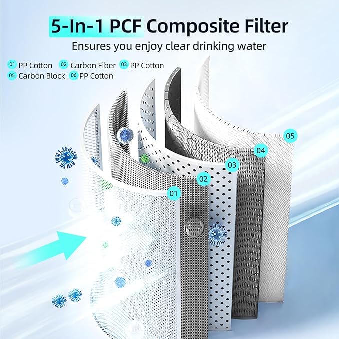 - 5-IN-1 EFFICIENT FILTRATION: The 5-in-1 front filtration stages ensures you enjoy clear drinking water every day.
