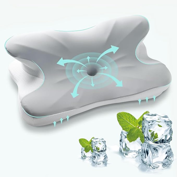 Cervical Neck Pillow for Pain Relief, Contour Memory Foam Pillows with Cooling Pillowcase, Neck Support Pillows for Sleeping, Ergonomic Orthopedic Pillow for Side, Back, Stomach Sleepers