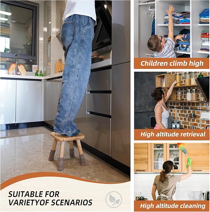 - 【Multifunctional Small Wood Step Stools】We hope this wooden stool can adapt to various scenarios and accommodate different users. For instance, adults can sit down to change shoes when they come home, while toddlers and children can sit down for meals in the restaurant. In addition, it can also provide assistance in places like the kitchen, bathroom, toilet, and under the office desk.