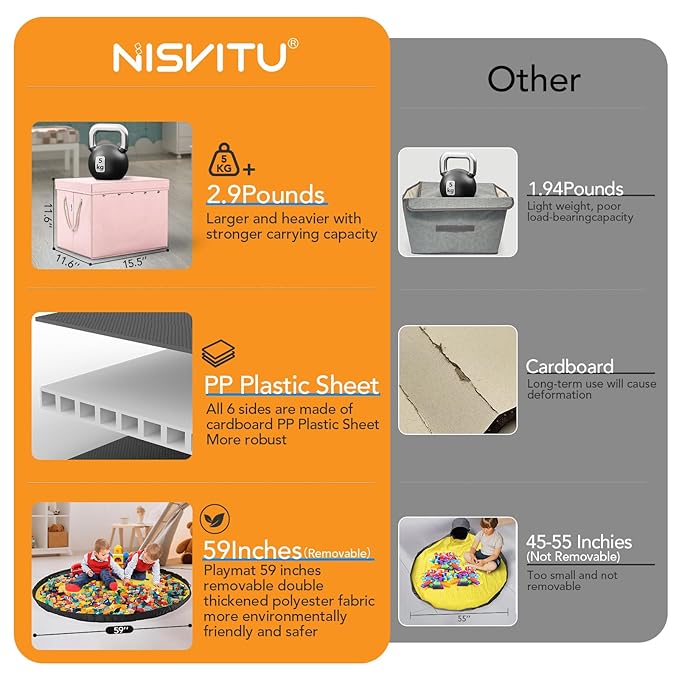- Play Mat Removable:The toy storage box can be removable into a toy box and Play Mat for Kids. After disassembly, it can be used as two different products, which can be disassembled and connected at will. The toy storage organizer connection uses metal buckles, which are not easy to fall off and be damaged.