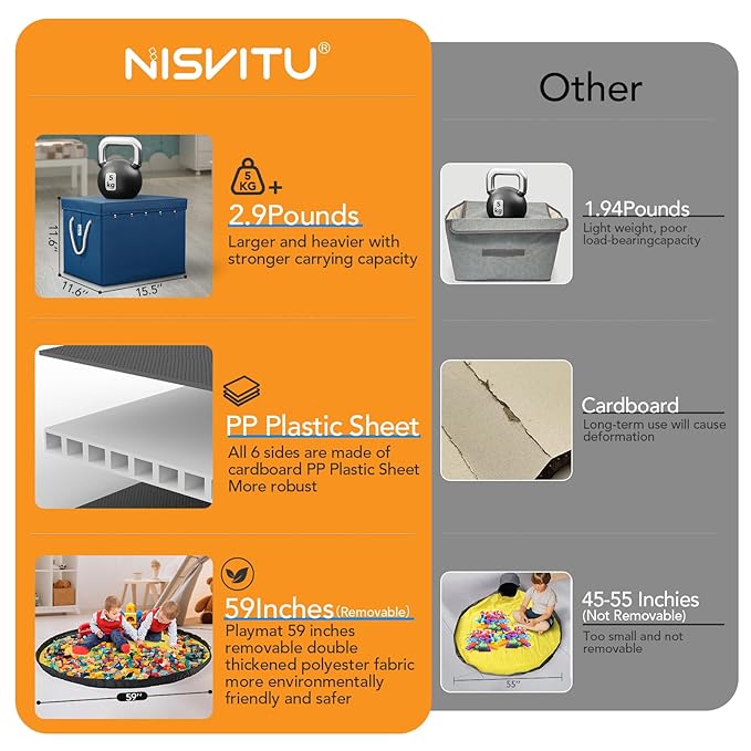 - Play Mat Removable:The toy storage box can be removable into a toy box and Play Mat for Kids. After disassembly, it can be used as two different products, which can be disassembled and connected at will. The toy storage organizer connection uses metal buckles, which are not easy to fall off and be damaged.