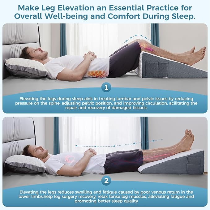 - 【Versatile Use Bed Wedge for Your Health】Innovative wedge pillows are expertly designed based on Fowler’s position theory and extensive nursing research. This versatile pillow is the perfect size for elevating the body, making it ideal for post-surgery recovery, acid reflux, GERD, snoring, breathing issues, back pain relief, and leg swelling. Experience tailored support and relief with this carefully crafted wedge pillow