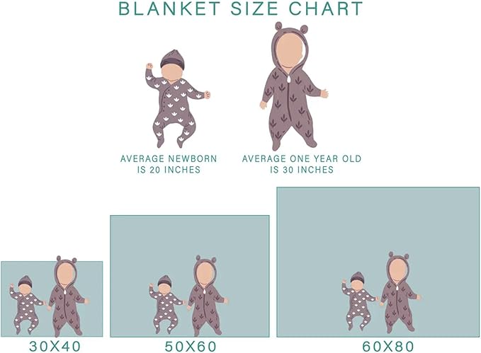 - Sizes: 30 x 40 perfect as bassinet carseat stroller cover, tummy time, nursing daycare sicurity blanket, burp cloth, crib receiving blanket for newborn baby infant toddler. 40 x 50 is good for baby boys girls and toddlers , 50 x 60 is perfect for teens and adult as a sofa throw. 60 x 80 is big enough for a queen size bed. Our unique-designed and functional throw blanket is perfect for baby room, kid’s room, bedroom, crib, stroller, couch or sofa decor and are sure to get a lot of compliments