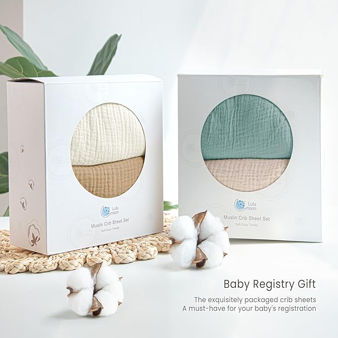 Lulu moon Muslin Crib Sheets - Fitted Crib Mattress Sheets for Boys and Girl - 28"x 52", 2 Pack