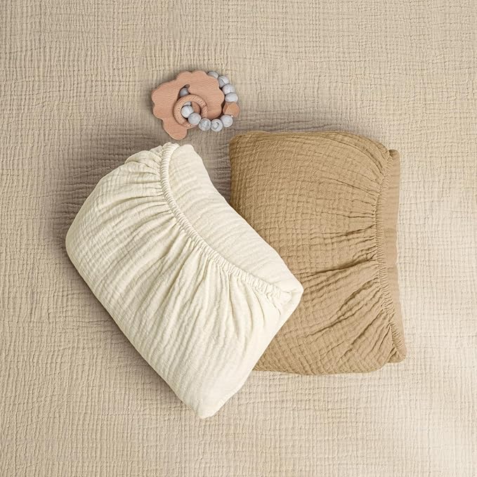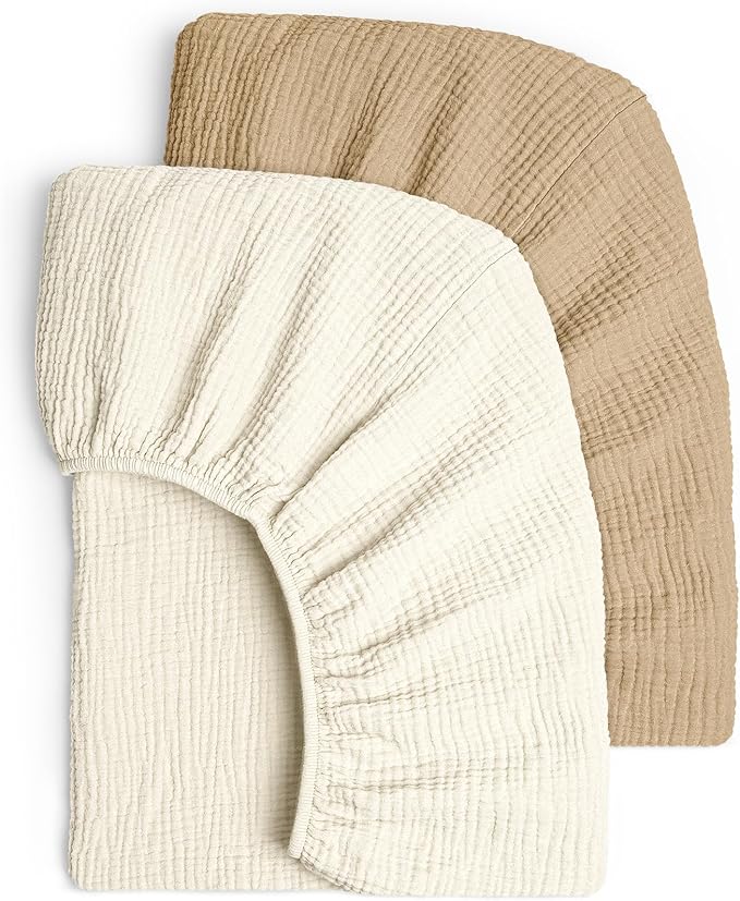 - SOFT AND COMFORTABLE - The crib sheets is made of 100% muslin cotton, super soft, comfortable, and won't irritate your baby's delicate skin. Lightweight, breathable muslin crib sheets stay cool even in warm weather.