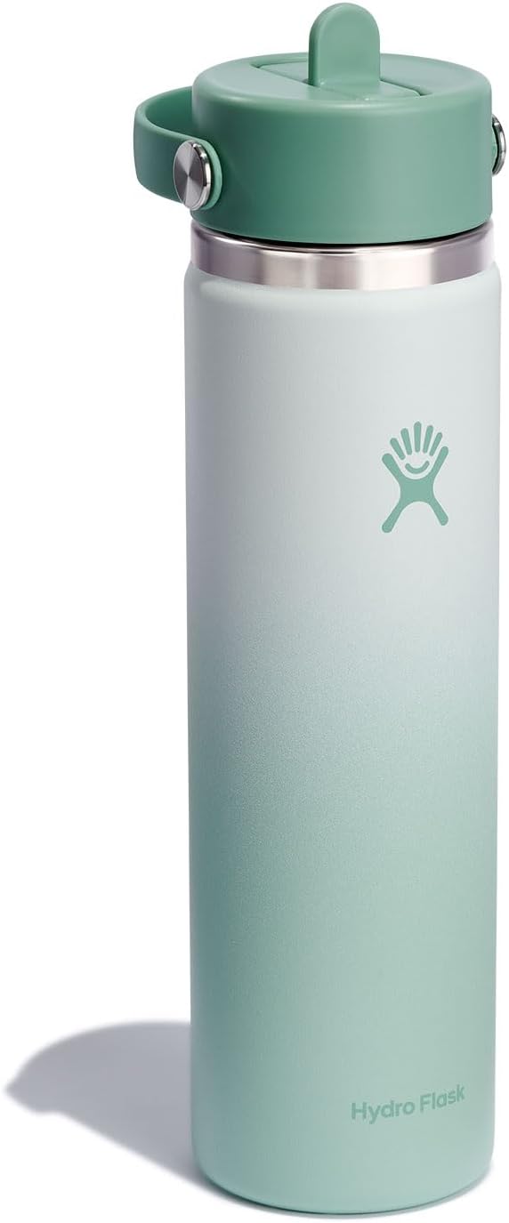 HYDRO FLASK Wide Mouth vacuum insulated stainless steel water bottle with leakproof closeable straw lid for cold water drinks, sports, travel, car and school