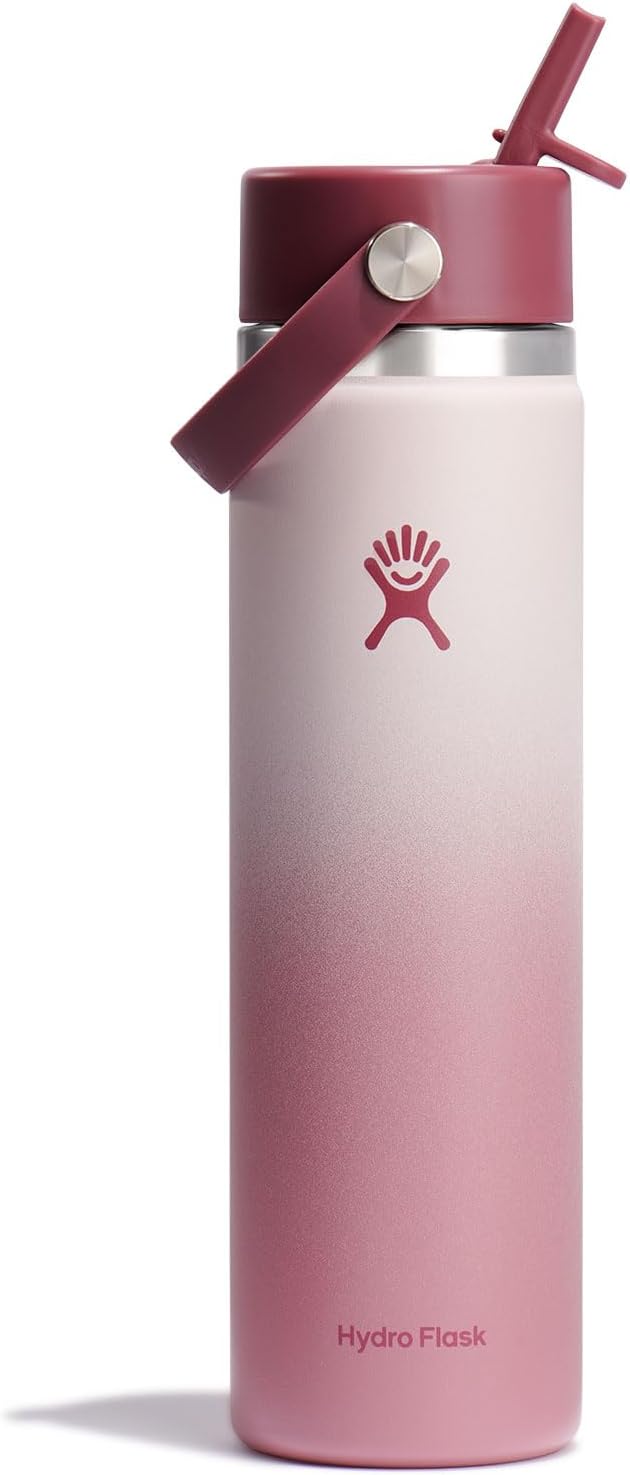 HYDRO FLASK Wide Mouth vacuum insulated stainless steel water bottle with leakproof closeable straw lid for cold water drinks, sports, travel, car and school