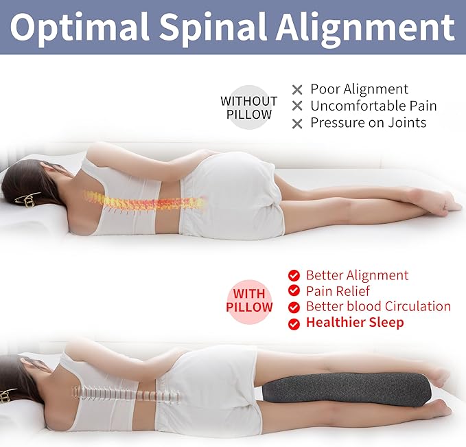 Half Moon Bolster Knee Pillow, Back Pain Relief Memory Foam Leg Pillow, Semi Roll Round Lumbar Leg Wedge for Side Sleepers - Reducing Head Neck Spine Hip Pressure - L