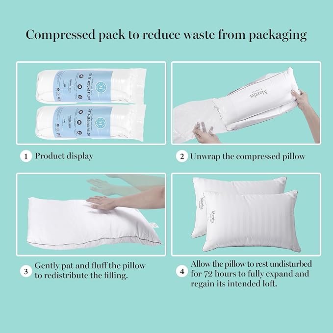 - 【Meidum Soft Feather Down Pillows 】- Perfect balance of breathability and resilience with our innovative pillows. 500 thread count damask stripe fabric made from 100% cotton, our pillows allow for optimal airflow.bouncing back to their original shape after each use, providing you with long-lasting comfort and support.