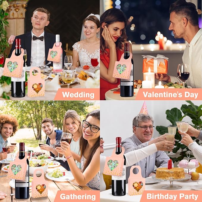 - 【Heart-Shape Clear Window】The hanging wine bottle boxes are designed with a clear window, you can clearly see the things inside, simple and elegant display of your delicious baked goods or creative gifts, etc. The wine gift box expresses your love, your family and friends will be pleasantly surprised by these gifts.