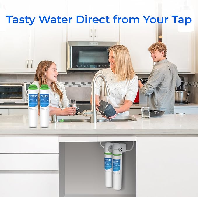 - [Extended Filter Life] This replacement filter has an extended filter life of 6 months or 1,350 gallons, which may vary based on your local water conditions and water usage. Its ultra-long filter life means less frequent replacement, and this also help save our planet and your bills. With two filters, you can save over 20,000 plastic bottles every year.