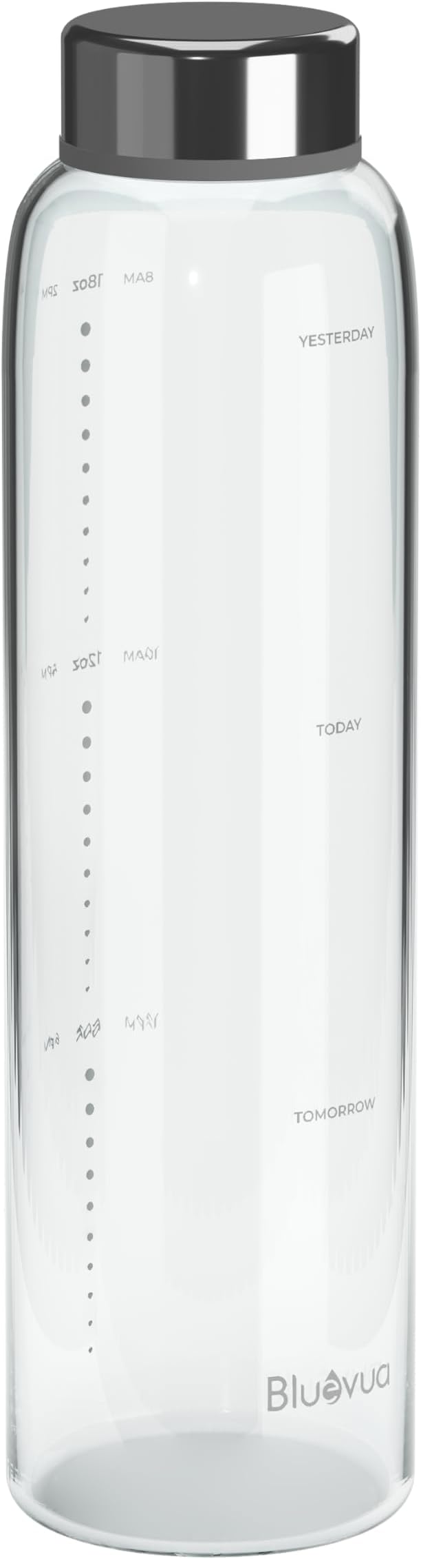 Bluevua Glass Water Bottle, 18 Oz High Borosilicate Glass with Time Marker, and Stainless Steel Leak Proof Lid, Compatible With RO100ROPOT-Travel Reverse Osmosis System