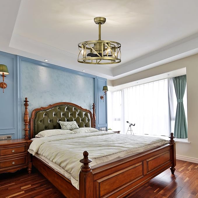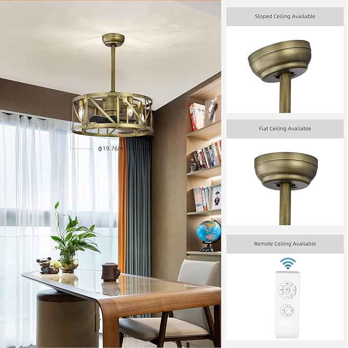 - Small Size: Design of caged ceiling fan with 5 small blades take up less space. Perfectly for small to medium space with low profile ceiling.