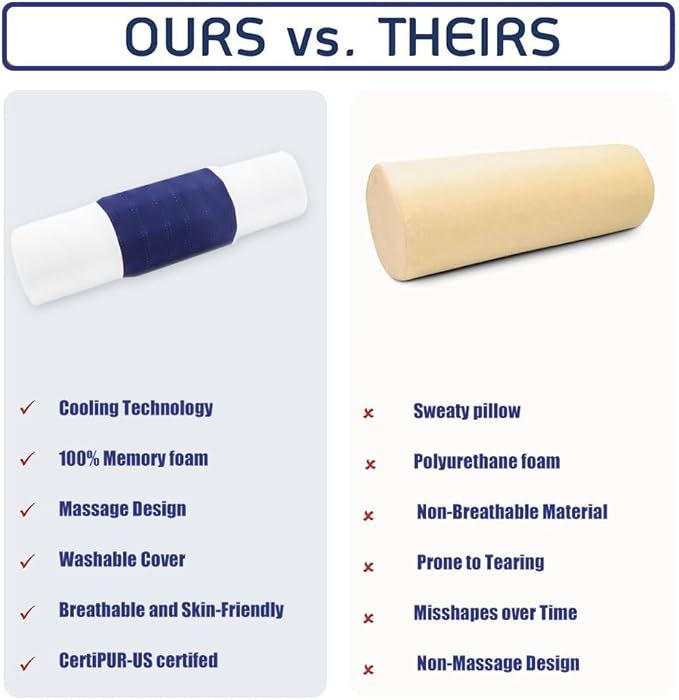 - Ergonomic Design: With dimensions of 17*4 inches, our neck roll pillow is designed in adherence to ergonomics. It aligns well with your neck curve, facilitating effective traction and relaxation of the cervical vertebrae. Additional massage grains and long bar massage blocks help enhance the traction effect.