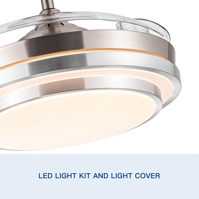 - Retractable Blades: This ceiling fan with retractable blades which will extend or hide when they turn on or off, saving more space and preventing dust accumulation.