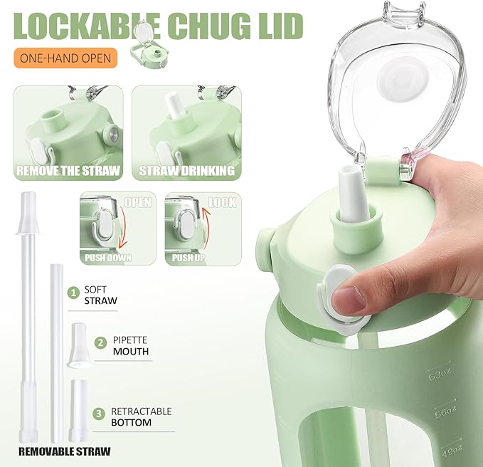 - TWO LIDS DESIGN: Our motivational glass water bottle boasts 2 lids, a flip lid and a spout lid, to meet your various needs of drinking on different occasions and making you get 2 bottles with 1 bottle’s cost.