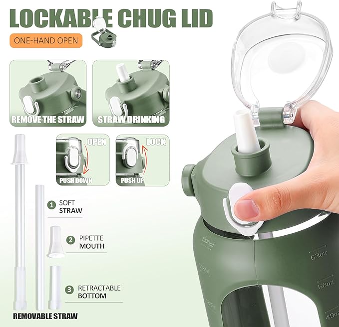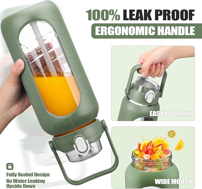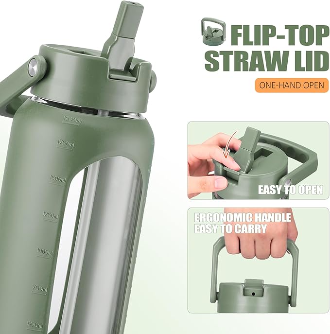 - TWO LIDS DESIGN: Our motivational glass water bottle boasts 2 lids, a flip lid and a spout lid, to meet your various needs of drinking on different occasions and making you get 2 bottles with 1 bottle’s cost.
