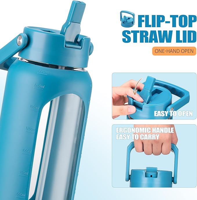 - TWO LIDS DESIGN: Our motivational glass water bottle boasts 2 lids, a flip lid and a spout lid, to meet your various needs of drinking on different occasions and making you get 2 bottles with 1 bottle’s cost.