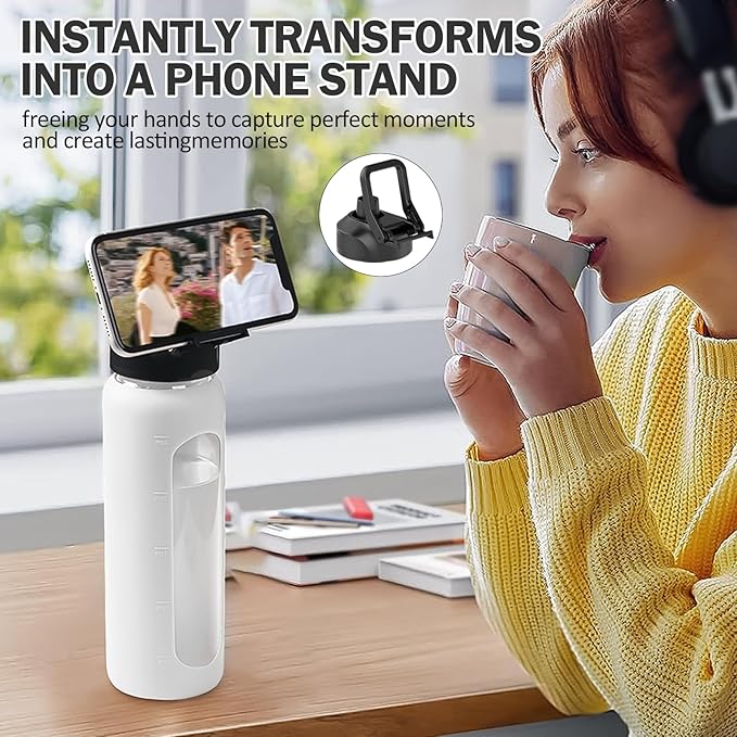 - PHONE STAND & CUP HOLDER FRIENDLY- Choosing the NOLOGLAZIC glass water bottles 32 oz not only keeps you hydrated but also doubles as a convenient phone stand, freeing your hands for capturing perfect moments and other activities such as work and workouts. Moreover, it fits most car cup holders, making it the perfect companion for drivers.