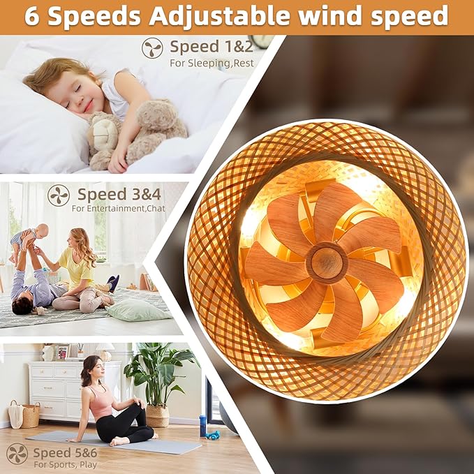 NicBex Ceiling Fan 20 Inch Ceiling Fans with Lights Bamboo Woven Ceiling Fan with Blades and Remote Control Flush Mount Ceiling Fans for Bedroom, Living Room, Natural