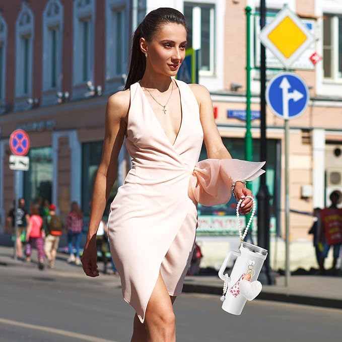 - Protection and Decoration Compatible with Stanley Cup: with a heart hook on the cup, you can apply the pearl crystal ball charm and heart shaped pompom keychain as cute decorations compatible with Stanley Cup, giving your cup a distinctive look and an element of color to your daily outfit; The silicone water bottle handle makes carrying the water bottle easy and convenient while looking elegant; The lipstick sleeve is practical as well as a storage bag for little items like keys