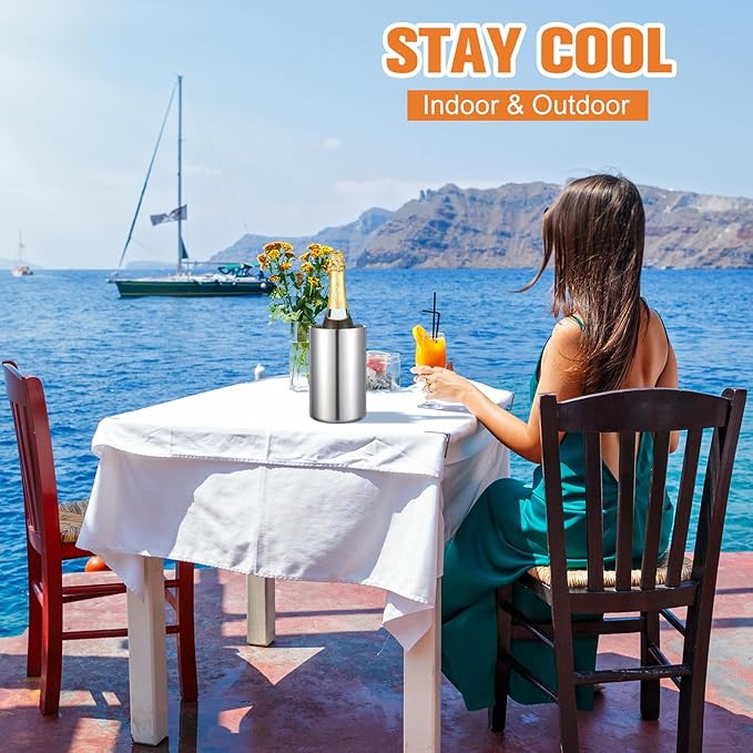- Keep Wine Chilled: the stainless steel wine bucket chillers adopt double layer wall and can effectively isolate the temperature inside and outside the barrel, so they can keep your wine, champagne, juice, or beverage cold, bringing you a pleasant drinking experience during summer