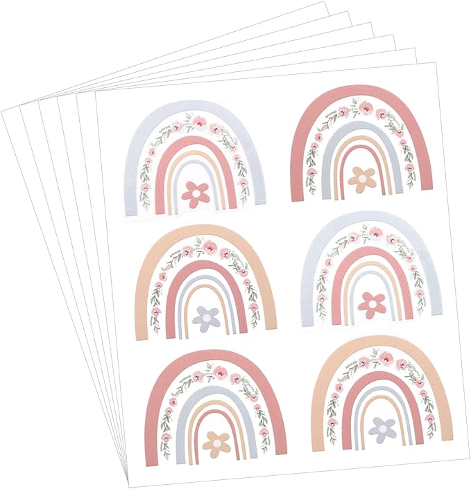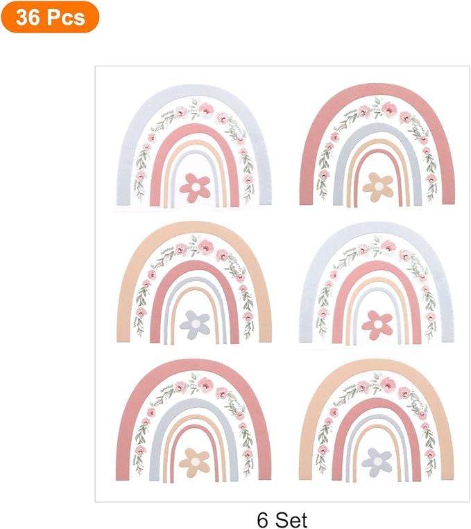- Color: Multicolor; Material: PVC; Sticker Size: Rainbow: 5.5 x 7cm / 2.2 x 2.8inch(L x W); Packing Content: 6 Sheet x Wall Sticker ( include 36 Pcs)