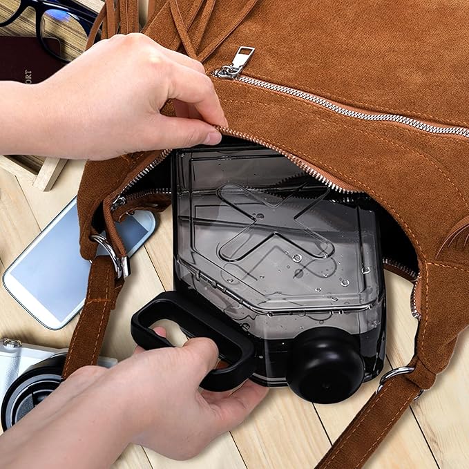 - Easy to Carry: The flat bottle is designed with a wide handle which is easier for carrying. It also can be taken into bags, such as schoolbags, backpacks. It won't take up too much space.