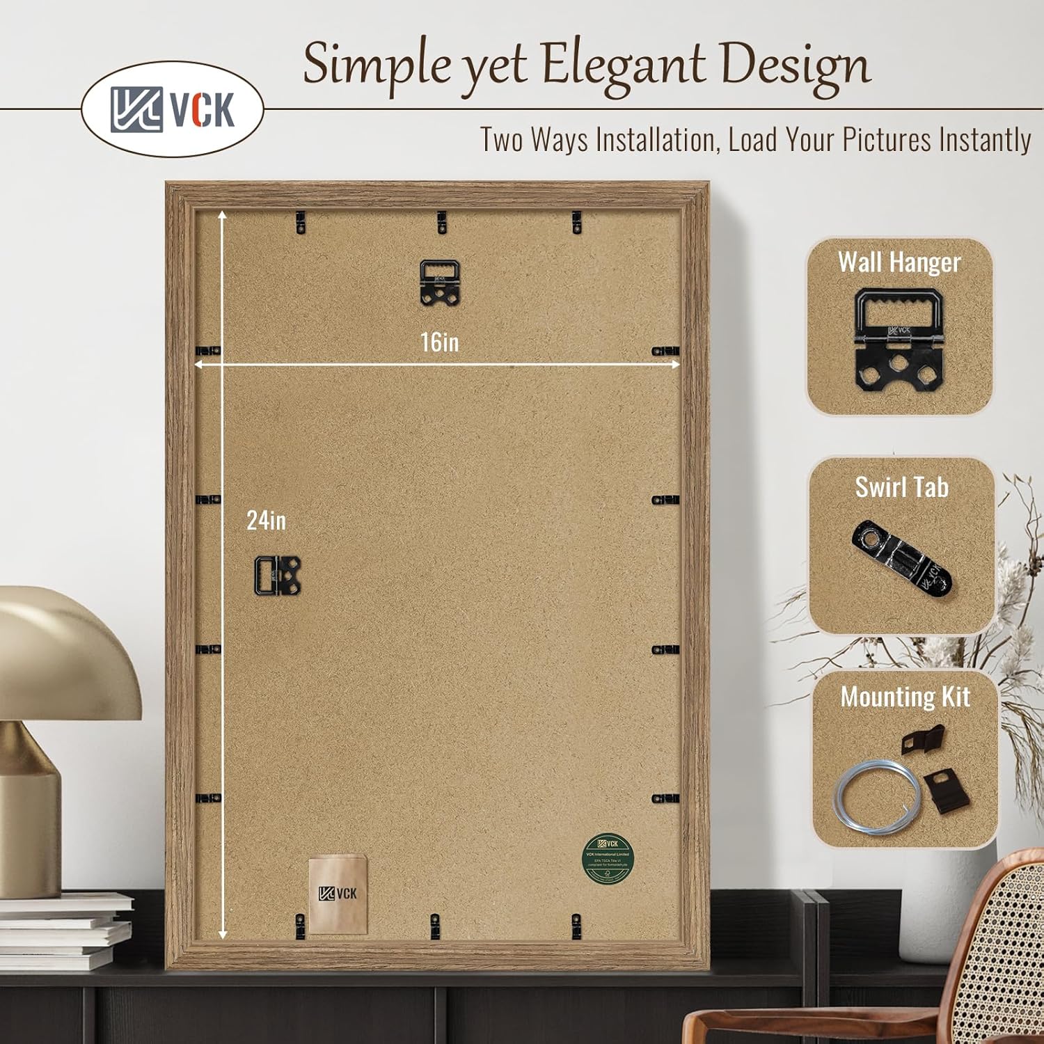 VCK 16x24 Frame 3 Pack - Brown Walnut, Natural Textured Solid Wood Poster Picture Frame, Wall Mounting Hanging