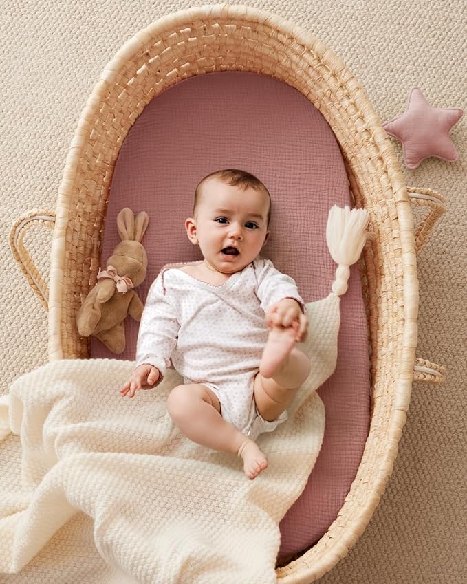 - Premiun Muslin Cotton: Made from muslin cotton, our bassinet sheets are cozy and breathable in all seasons, making babies a better sleep. Plus, the soft muslin material is friendly for your baby's delicate skin