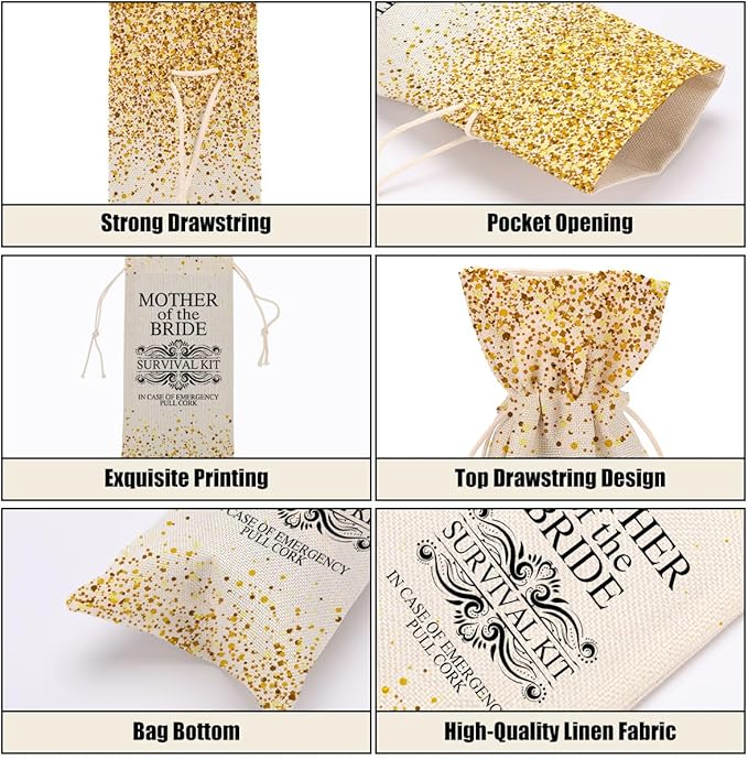 - Perfect Design And Size: Our wine bottle gift bags are 14.2 x 5.5 inches, can hold red wine bottles or champagne bottles, drawstring design makes it easy for you to put in and take out the wine bottles. Tighten the drawstring to protect your bottle from exposure. Can enhance the elegance and novelty of supplies and decorations for various party occasions. This is a unique gift for men, women, mom, colleague, grandma, friend, sister, bride, bridesmaid, father, groom.