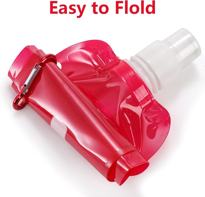 Youeon 16 Pack 16 Oz Collapsible Water Bottles BPA-Free, Reusable Foldable Canteen, Plastic Water Bottle with Carabiner, Drinking Water Bags Water Pouch for Gym, Hiking, Camping, Climbing, Travel