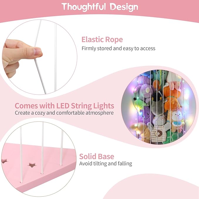 - Practical & Decorative: This stuffed animal wall holder comes with LED string lights(19.7 inches 50cm, requires 3 batteries - not included), which is great for display and store cuddly plush toys. Light can create a cozy and comfortable atmosphere, kids will be more relaxed.