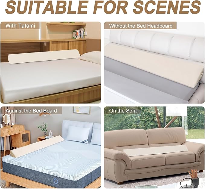 - Multi-fuction: Our bed headboard is good choice for beds with no headboard, hard wooden and Hollow iron art headboard. The wedge pillow gap filler can not only fill the gap of the mattress between headboard or wall keeps pillows from slipping , but also can be used with ordinary pillows to elevate the pillow height on the perfect angel for a great night's sleep.It can also be used in living room sofas to support back and waist for supporting.
