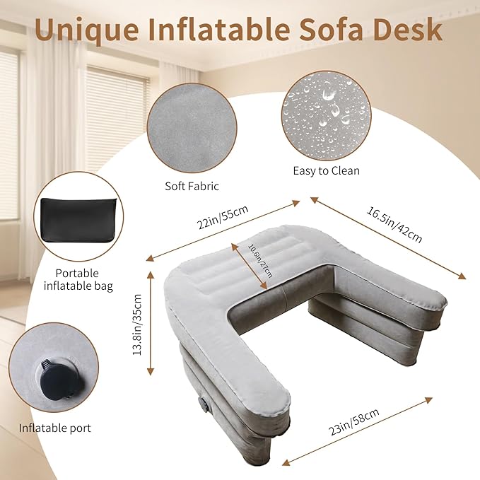 - 【Inflatable Reading Pillow】BOSSTONE lap pillow desk is inflatable (Inflatable bag included). It's spacious and comfortable with arm supports to relieve arm fatigue and provide a flat desktop for light office tasks. Say goodbye to bulky memory foam desk, our inflatable reading pillow lighter weight and more portable, it is easy to carry to indoor & outdoor.