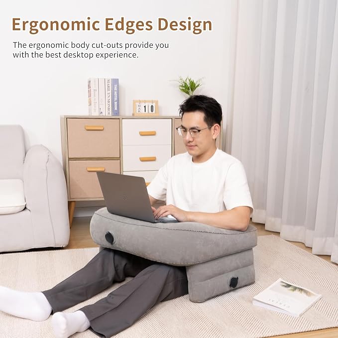 Inflatable Reading Pillow for Gaming Foldable Soft Lap Desk Pillow for Reading Working Gaming Pillow Lep for Bed, Arm Rest Pillow for Adult, Laptop Pillow for Lap in Bed Floor Sofa Couch Camping