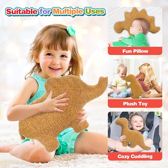 - Dino Nugget Pillow: Adorably cute and soft with added nostalgia from childhood dinners. You will love showing your family or friends and immediately seeing their smiles of surprise and delight. The whimsical decor addition will have everyone wanting one. This is a cute plush that makes a great gift for teen girls, teen boys, boyfriends, girlfriends, brothers, sisters, men, women.