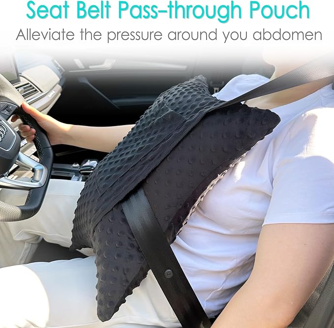 - Must Have for Post-op Recovery: Our c-section pillow can help relieve the pressure on your wound after surgery, whether you are standing, sitting or riding a car. Placing it under the seat belt during the ride helps to cushion pressure. If you need to sneeze, cough or laugh, pressing it onto the incision can alleviate the pain. Excellent shock absorption helps to minimize any discomfort. If your child or pet jumps onto you, you can also use an abdominal pillow to protect vulnerable areas.