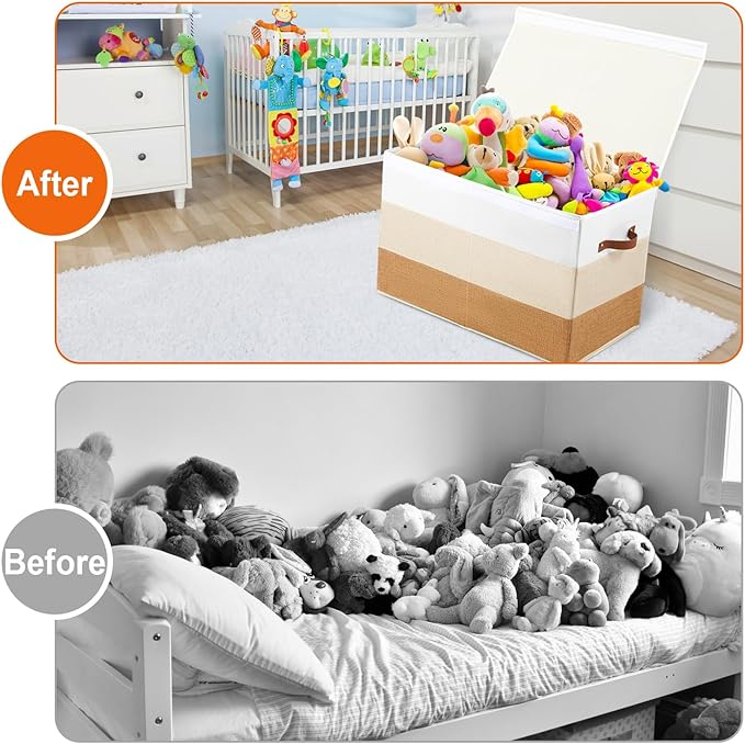 - MULTIPURPOSE - The toybox is good for store books, clothes, towel, blankets, bedding, pillows, decorations, office supplies, ideal for living room, bedroom, utility room, nursery room, closet, dorms, even in the hallway, keeping your home nice and tidy